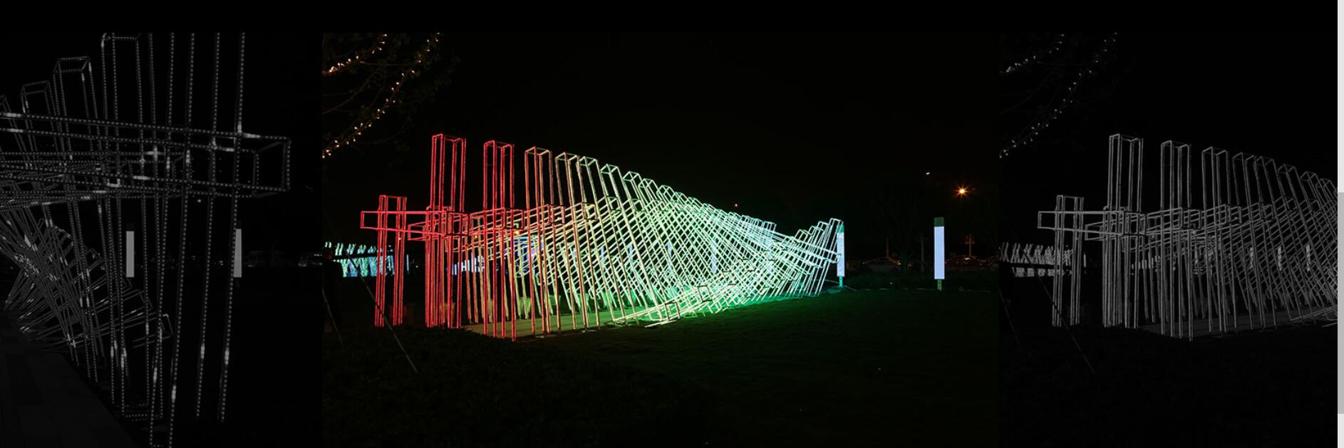 歐普景觀亮化設(shè)計(jì)師從五維空間中螺旋狀無限延伸的時(shí)間層次吸取靈感,創(chuàng)作出“光之通道”,它不僅是光影的通道,更是時(shí)光的隧道,更寓意著被智慧照亮的未來。同時(shí),這一立體構(gòu)成的表現(xiàn)手法,也與萬象城打造的“城市立體空間”的概念不謀而合。