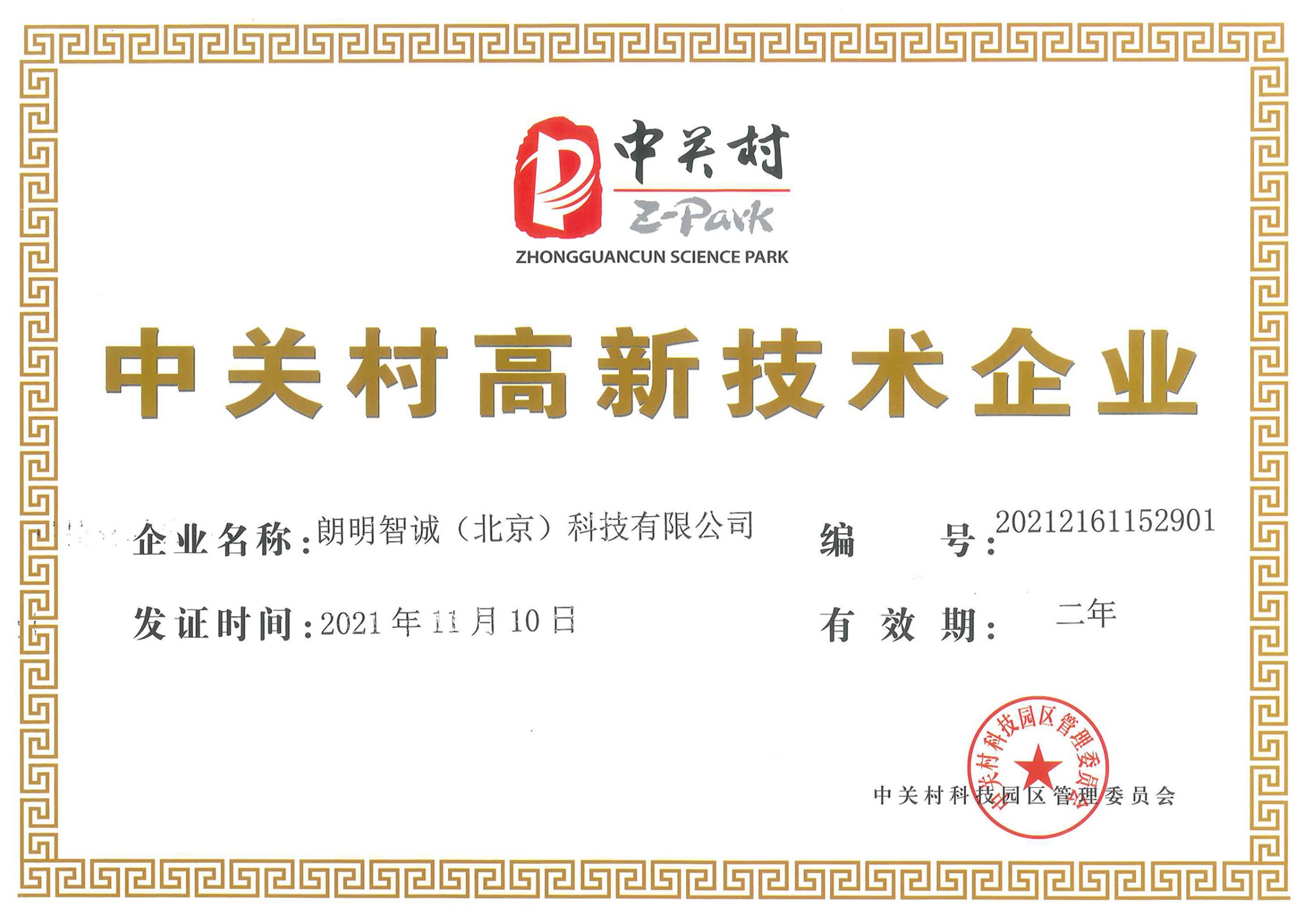 經(jīng)中關(guān)村高新技術(shù)委員會(huì)評(píng)審核準(zhǔn),朗明智誠(chéng)(北京)科技有限公司于2021年11月10日,榮獲“中關(guān)村高新技術(shù)企業(yè)”。